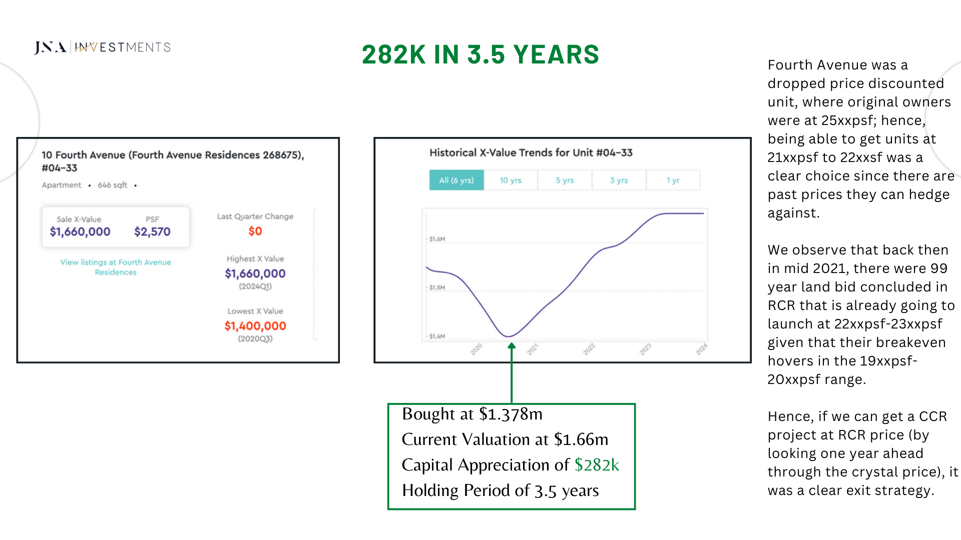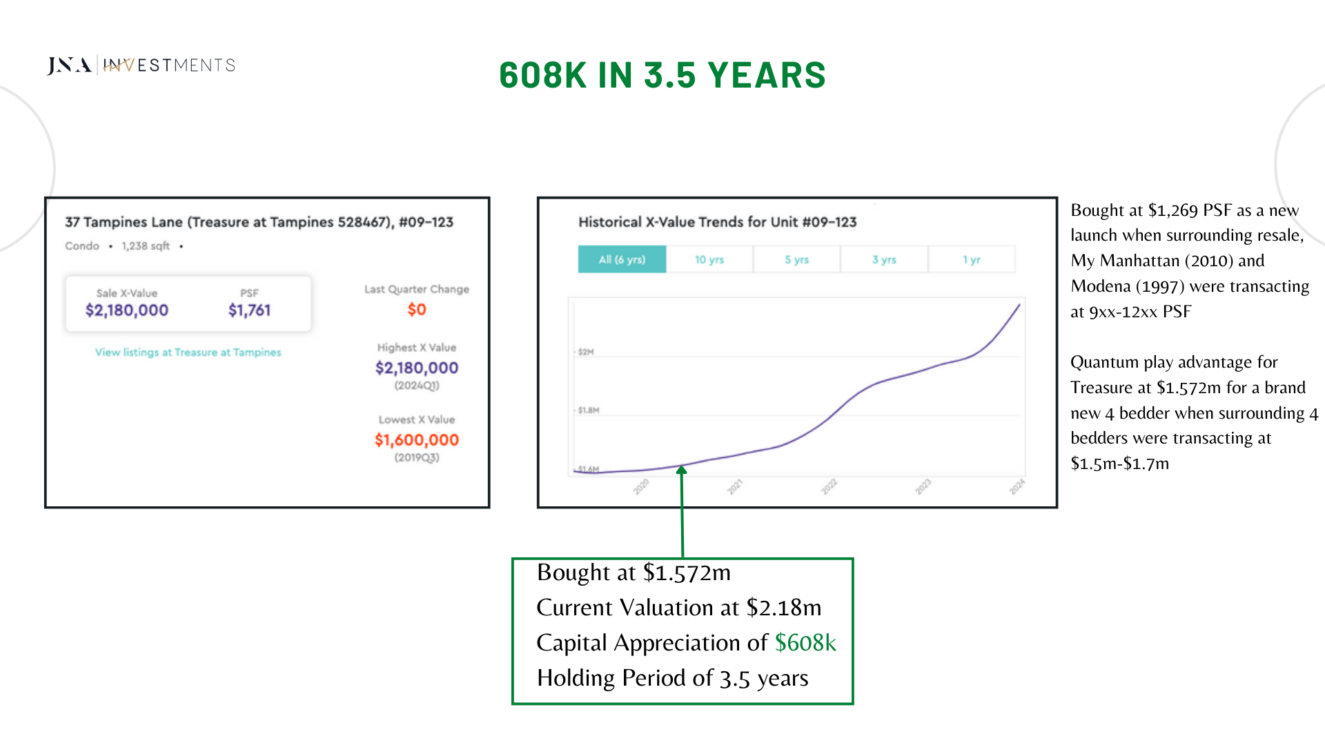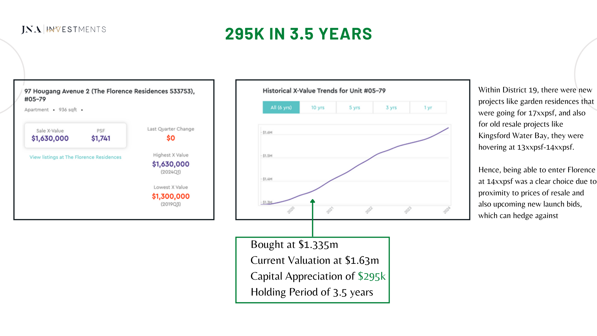 I am also a property investor, using the exact same strategies that I have implemented for my clients on their investments, I had purchased a 3-bedroom condominium at Normanton Park. Till date, my investment purchase has yielded capital gains of close to $400,000 in 3 years (approximately 23.15% p.a. returns).