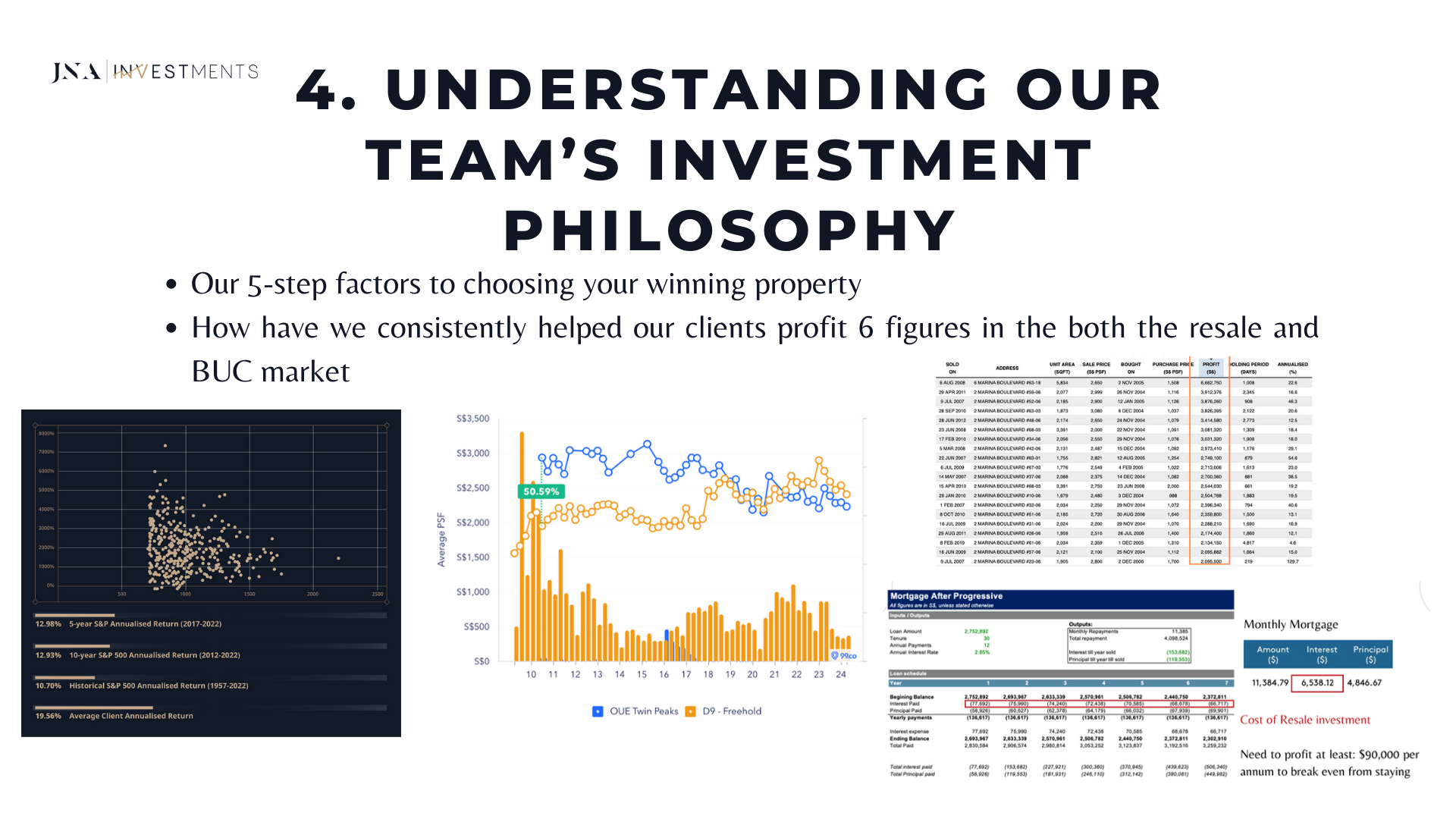 what are the 5 IMPORTANT FACTORS that we constantly adhere to, for our 500 clients to achieve 19.6% p.a. returns on average?